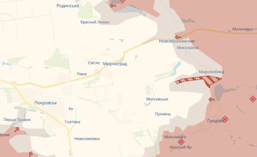 Так, фіксується рух армії РФ у бік Мирнограда: поблизу Михайлівки.