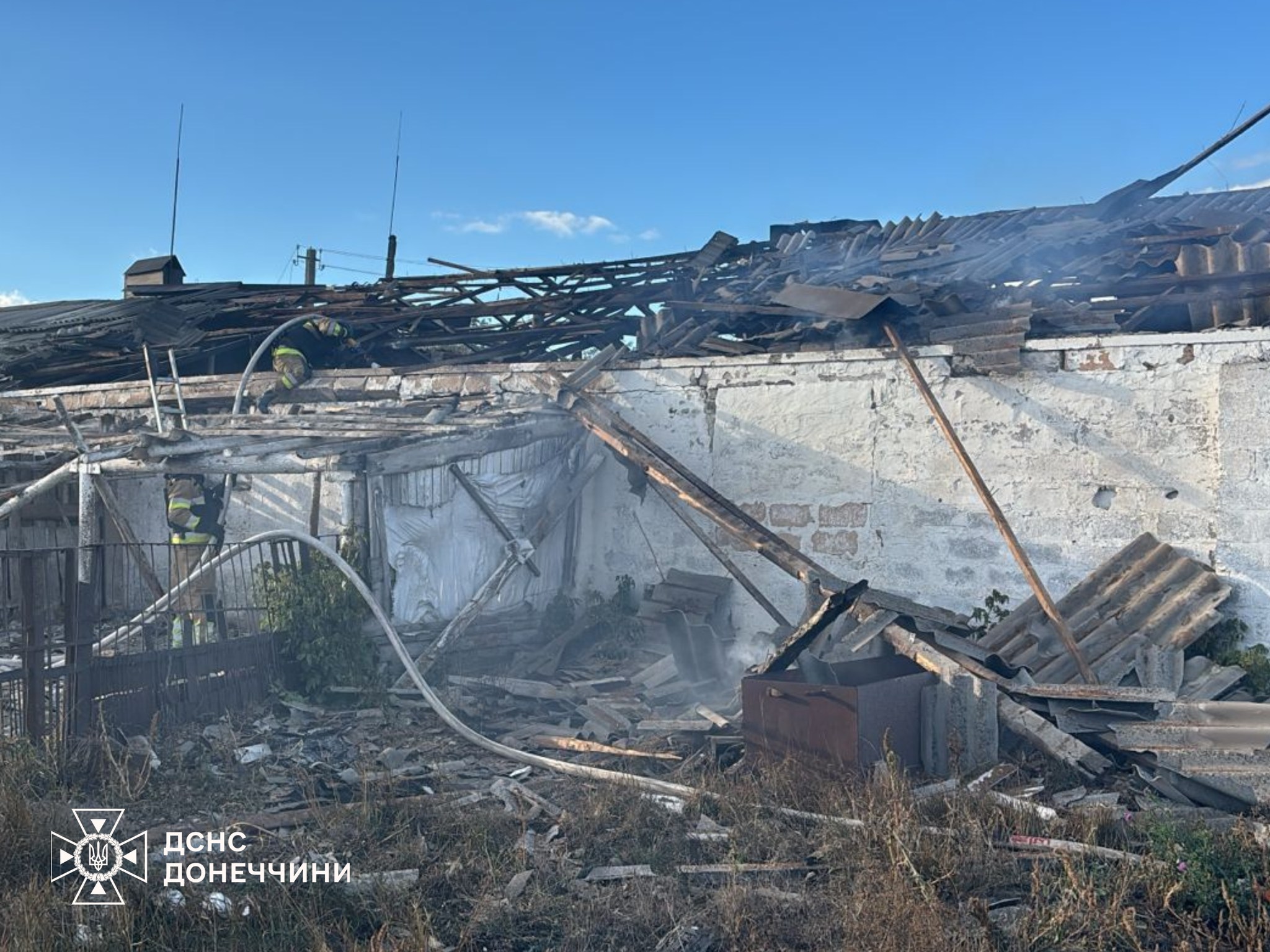 Пізніше рятувальники повідомили подробиці. Ворожий дрон ударив по будівлі фермерського господарства, спричинивши пожежу. Полум'я охопило покрівлю та перекриття споруди на площі близько 250 квадратних метрів. Завдяки швидким та злагодженим діям пожежних вогонь вдалося локалізувати та повністю загасити.
