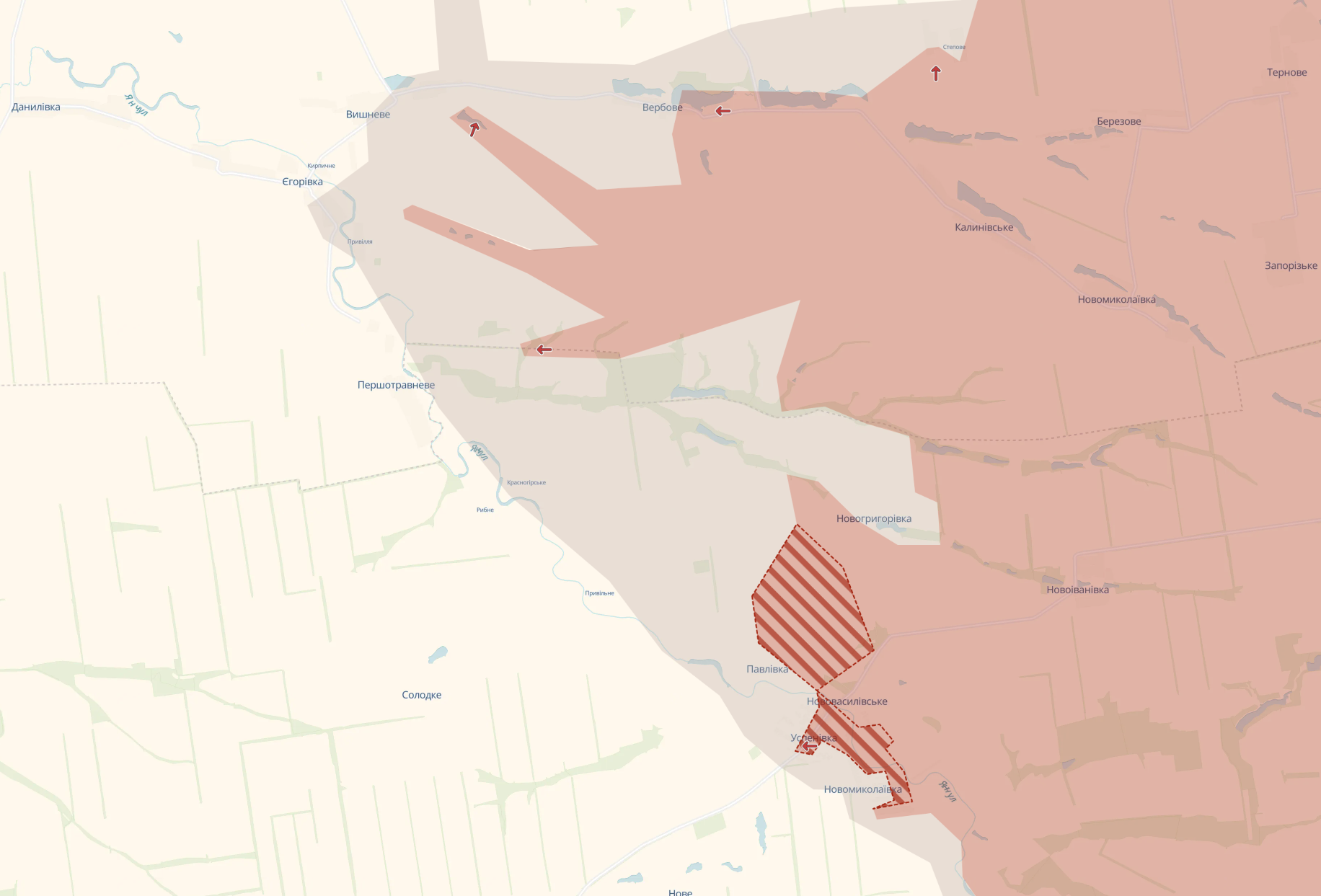 Крім того, російські війська просунулися в Запорізькій області: в Успенівці, Новомиколаївці та поблизу Новогригорівки.