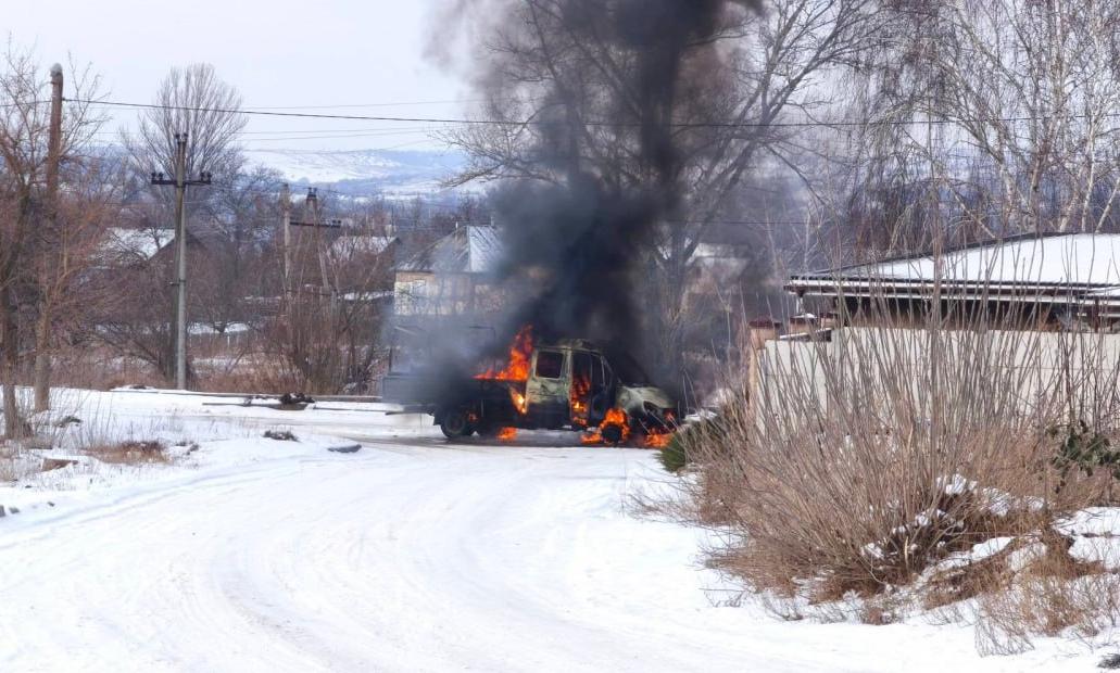 Інші співробітники залишилися неушкодженими. Службовий автомобіль вигорів повністю.