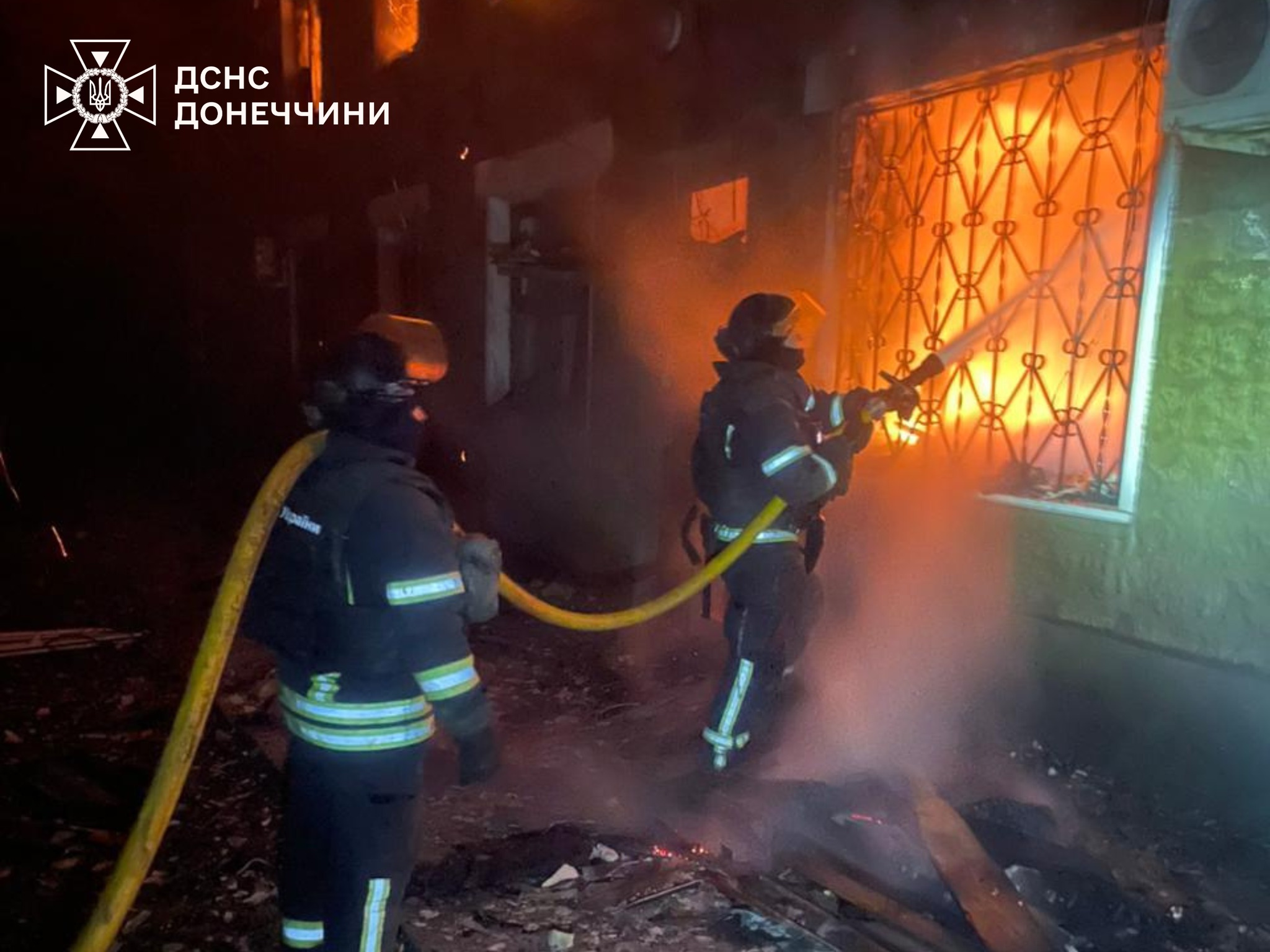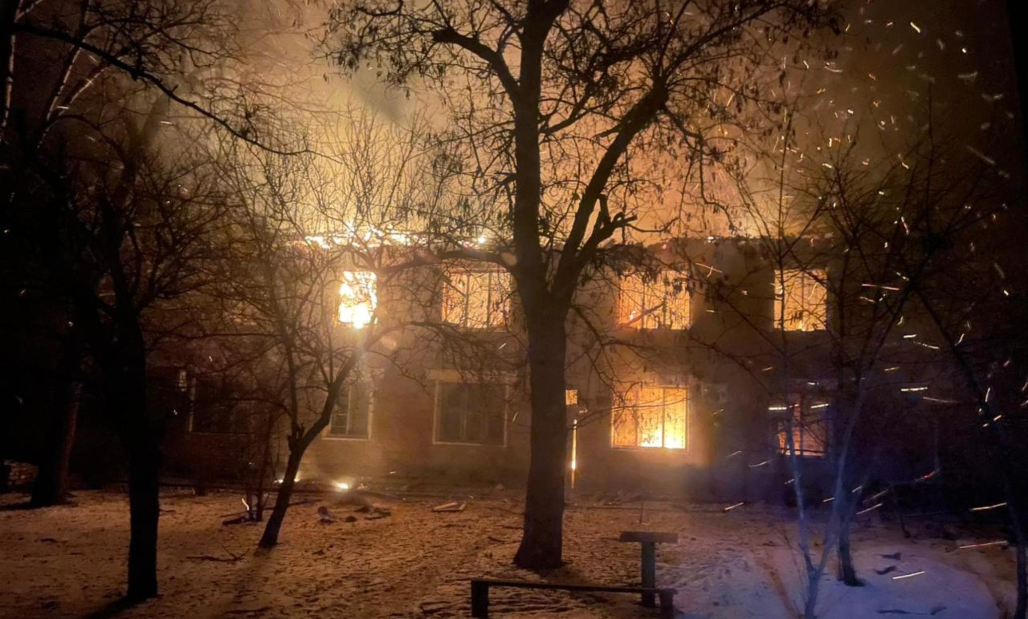Зайнявся двоповерховий багатоквартирний будинок. Рятувальники локалізували пожежу на площі 30 кв. м, проте через загрозу повторної атаки рятувальники призупинили гасіння вогню та повернулися до місця дислокації.