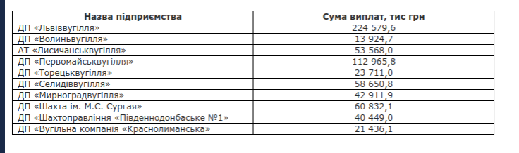 Деньги распределились по угледобывающим предприятиям следующим образом: