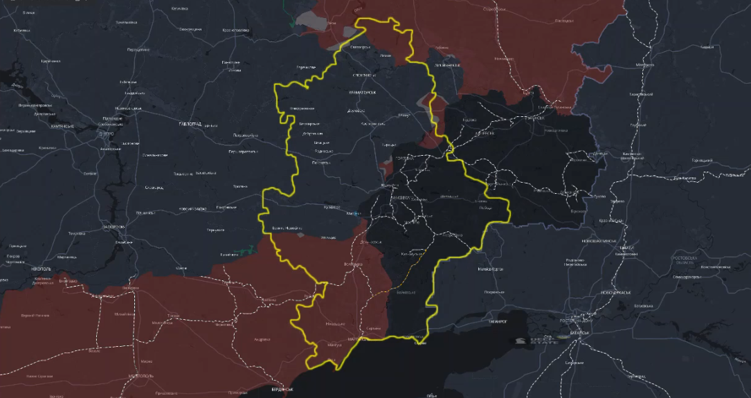 За останні 3 роки та 8 місяців (44 місяці або 1350 днів) армія РФ захопила 23% Донецької області, а під контролем Сил Оборони залишається 22,6%, пишуть аналітики DeepState.