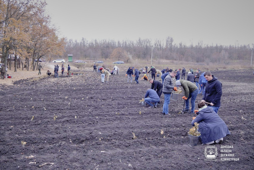 Больше сотни человек участоввали в посадке саженцев. Программа «Зеленая страна» направлена на защиту природы и окружающей среды. До конца года в Донецкой области планируют создать 150 гектаров новых лесов.